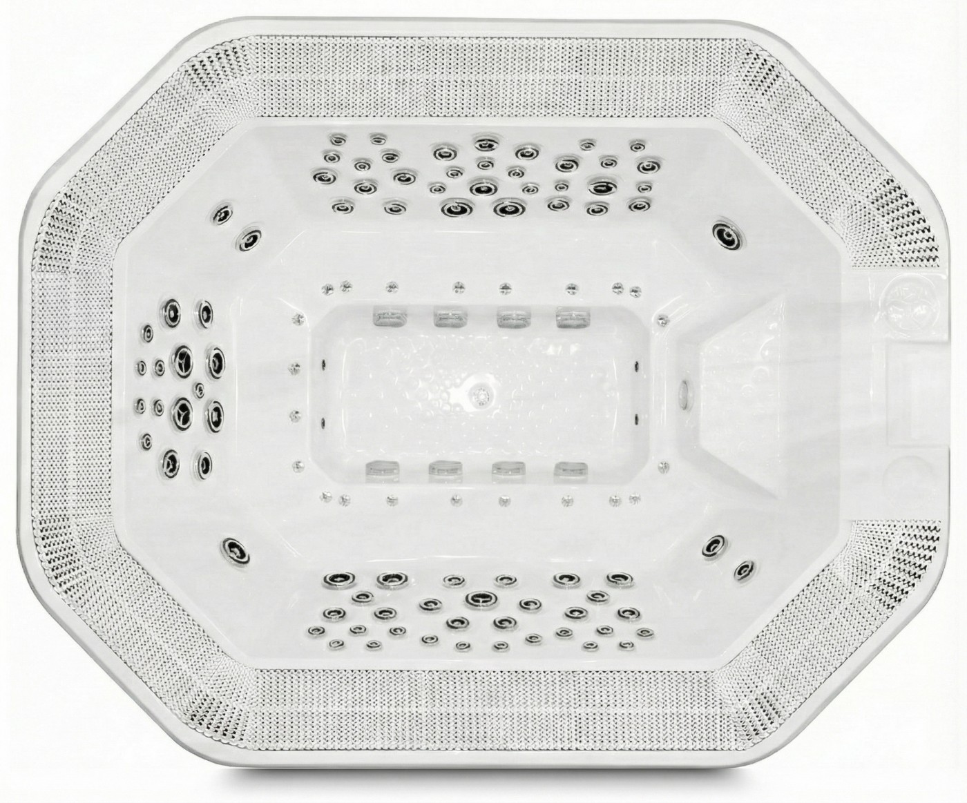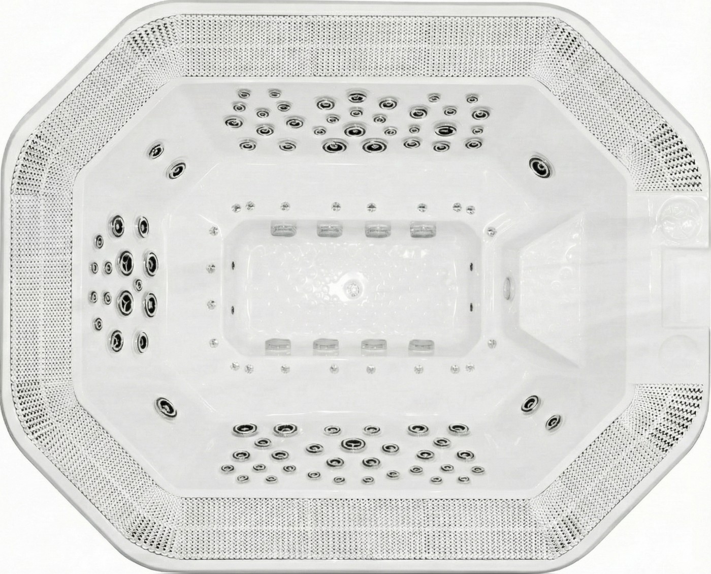 Vířivka s jedeníácti místy na sezení má ve výbavě 4 hydromasážní čerpadla GECKO o výkonu 3HP a 106 vhodně rozmístěných hydromasážních trysek.