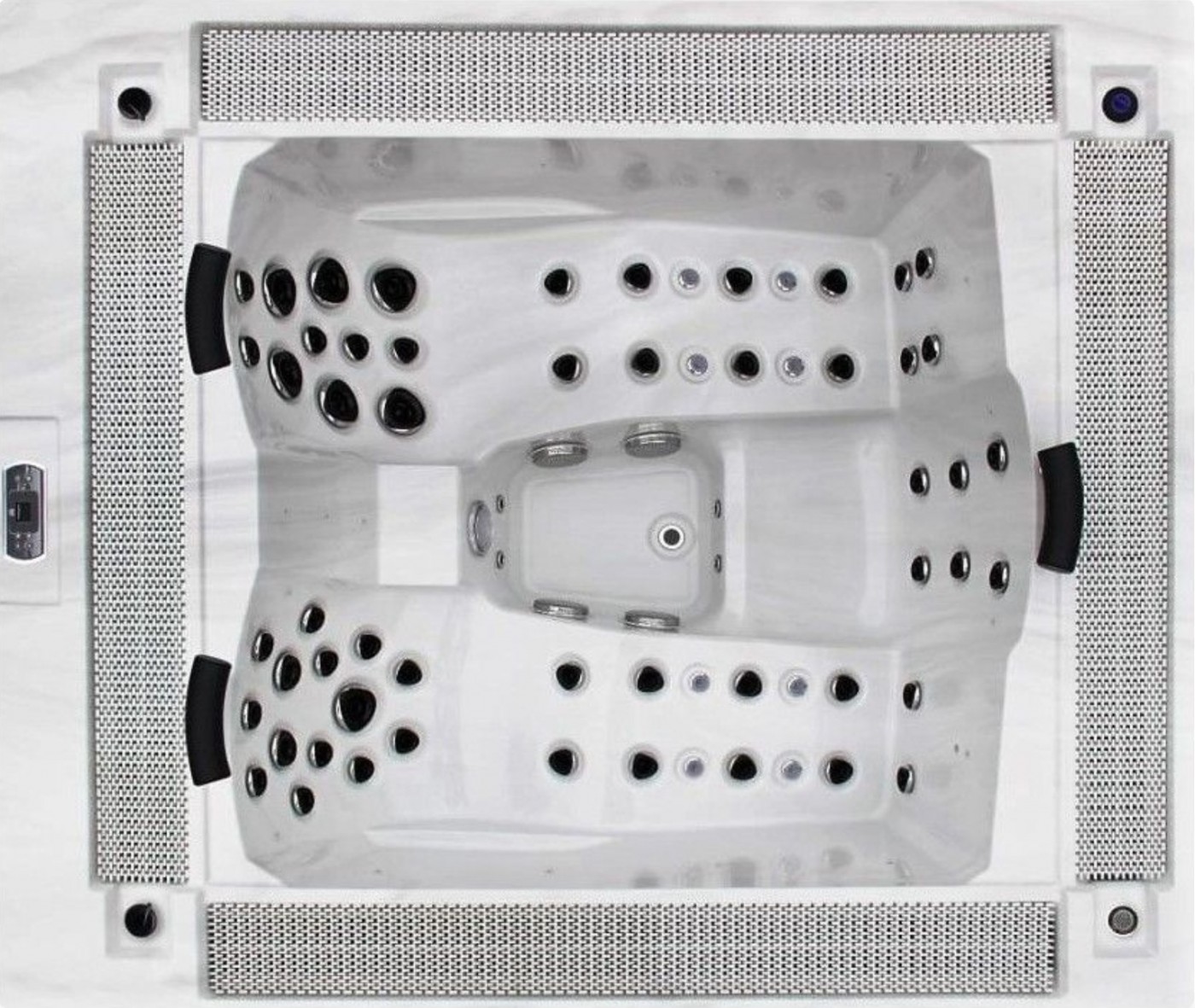 Vířivka má 2 komfortní místa na ležení a jedno místo pro sezení. Dvě hydromasážní čerpadla GECKO o výkonu 3HP s napojením na 61 trysek se starají o dokonalou vodní masáž celého těla.