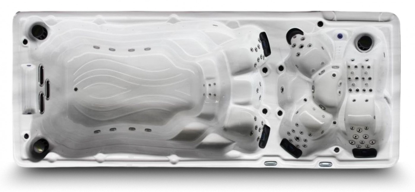 více fotografiíProstorné Swim Spa rozdělené na vířivku a bazén se samostatným ovládáním.