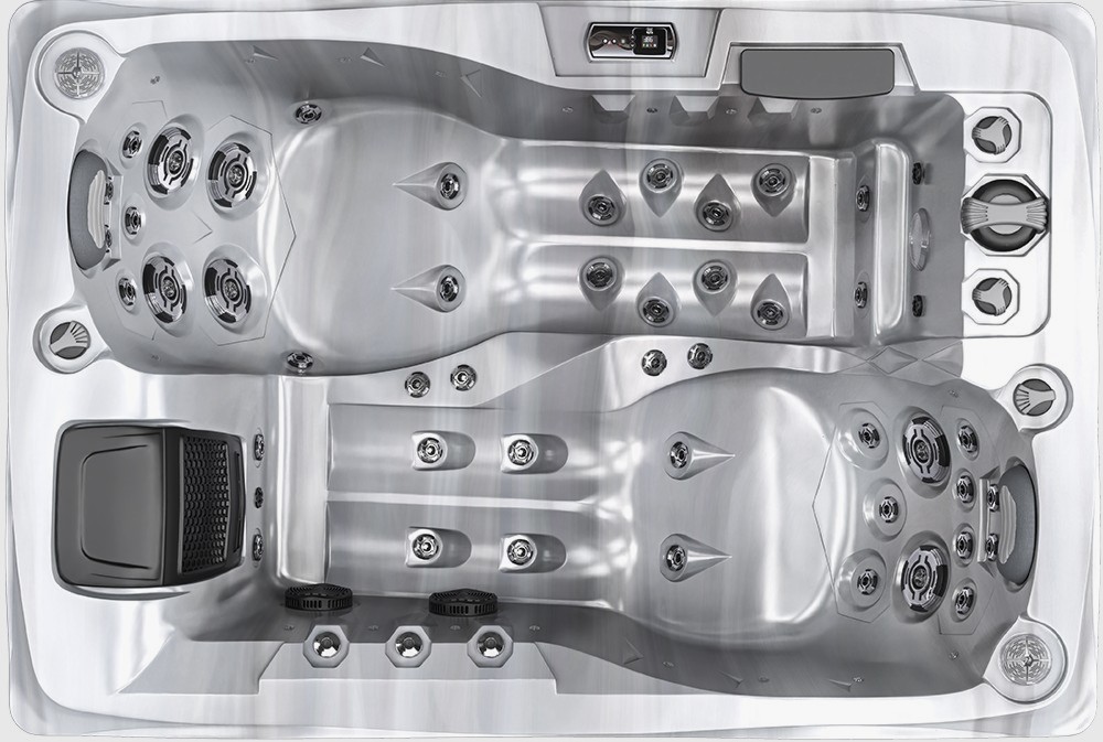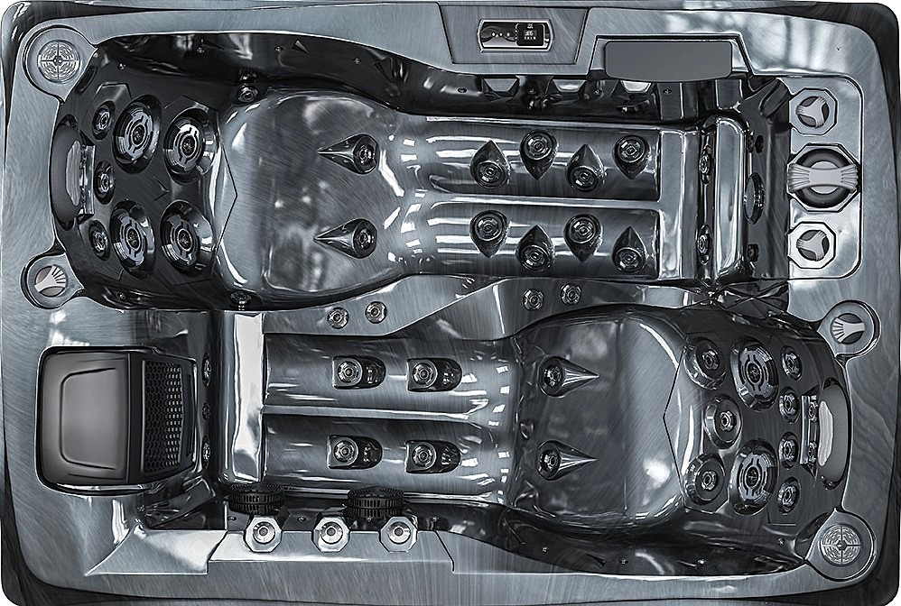 Rozměr 2000 x 1350 x 800mm. Nový design spojený s dokonalou masáží a pohodlnými lehátky pro 2 osoby. Celkem 46 hydromasážních trysek s regulací tlaku masáže.