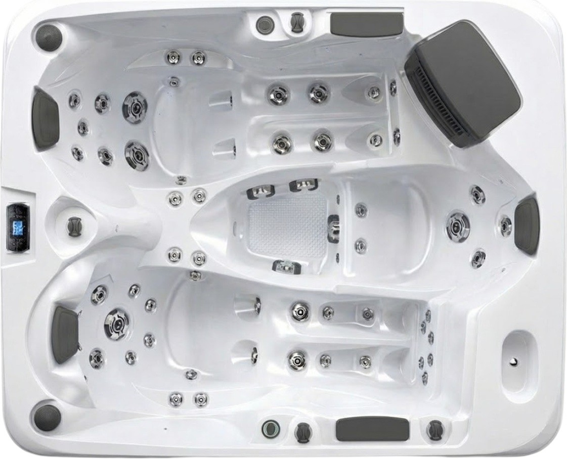 60× hydromasážní tryska s regulací (kombinace rotačních a přímých trysek různých velikostí), 3× regulátor tlaku.- Akrylát, nosný rám a izolace:
